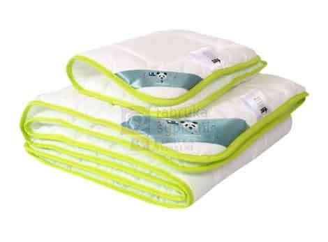 Kołderka i poduszka BAMBOO zostały pokryte innowacyjną tkaniną będącą połączeniem najlepszych cech bawełny i bambusa. Bawełna zapewnia miękkość i odpowiednią cyrkulację powietrza. Bambus z kolei nadaje tkaninie aksamitności oraz właściwości antybakteryjnych i antygrzybicznych - dzięki zawartości substancji bamboo-kun, naturalnie występującej w bambusie.
