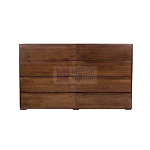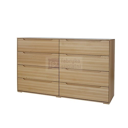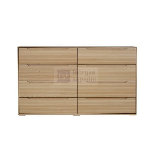 Bukowa komoda KD420 została stworzona z myślą o miłośnikach nowoczesnego minimalizmu. Mimo prostej formy zachwyca i przyciąga wzrok już od progu. Solidne, pozbawione zbędnych zdobień fronty dopełniają subtelne, wycięte w drewnie uchwyty, tworzące system otwierania i zamykania. Wyposażona w pojemne i funkcjonalne szuflady idealnie sprawdzi się do przechowywania licznych domowych bibelotów. Jej atutem jest też duży, bukowy blat, na którym pięknie prezentować się będą rodzinne pamiątki lub fotografie. Komoda osadzona została na niewielkich drewnianych nóżkach. Istnieje jednak możliwość dokupienia aluminiowych nóżek o wysokości 1 cm lub 10 cm, co zmienia charakter mebla i dodaje mu uroku.