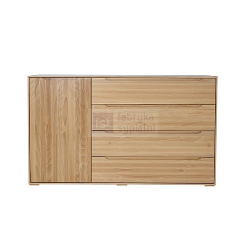 Bukowa komoda KD423 została stworzona z myślą o miłośnikach nowoczesnego minimalizmu. Mimo prostej formy zachwyca i przyciąga wzrok już od progu. Solidne, pozbawione zbędnych zdobień fronty dopełniają subtelne, wycięte w drewnie uchwyty, tworzące system otwierania i zamykania. Wyposażona w pojemną szafkę i funkcjonalne szuflady idealnie sprawdzi się do przechowywania licznych domowych bibelotów. Jej atutem jest też duży, bukowy blat, na którym pięknie prezentować się będą rodzinne pamiątki lub fotografie. Komoda osadzona została na niewielkich drewnianych nóżkach. Istnieje jednak możliwość dokupienia aluminiowych nóżek o wysokości 1 cm lub 10 cm, co zmienia charakter mebla i dodaje mu uroku.