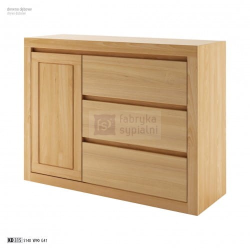 Dębowa komoda KD315 to została zaprojektowana w nowoczesnym, minimalistycznym stylu. Pozbawiona widocznych uchwytów, ozdobiona prostymi żłobieniami frontów. Niekwestionowanego uroku dodaje jej wyraźnie widoczne usłojenie naturalnego drewna dębowego, z którego powstała. Producent mebli Drewmax to nie tylko piękno, ale i funkcjonalność produktów. Dlatego komoda KD315 została zaprojektowana tak, by w pojemnej szafce oraz funkcjonalnych szufladach można było wygodnie przechowywać domowe przedmioty. Natomiast przestronny blat mebla to idealne miejsce na wyeksponowanie dekoracji lub rodzinnych fotografii.