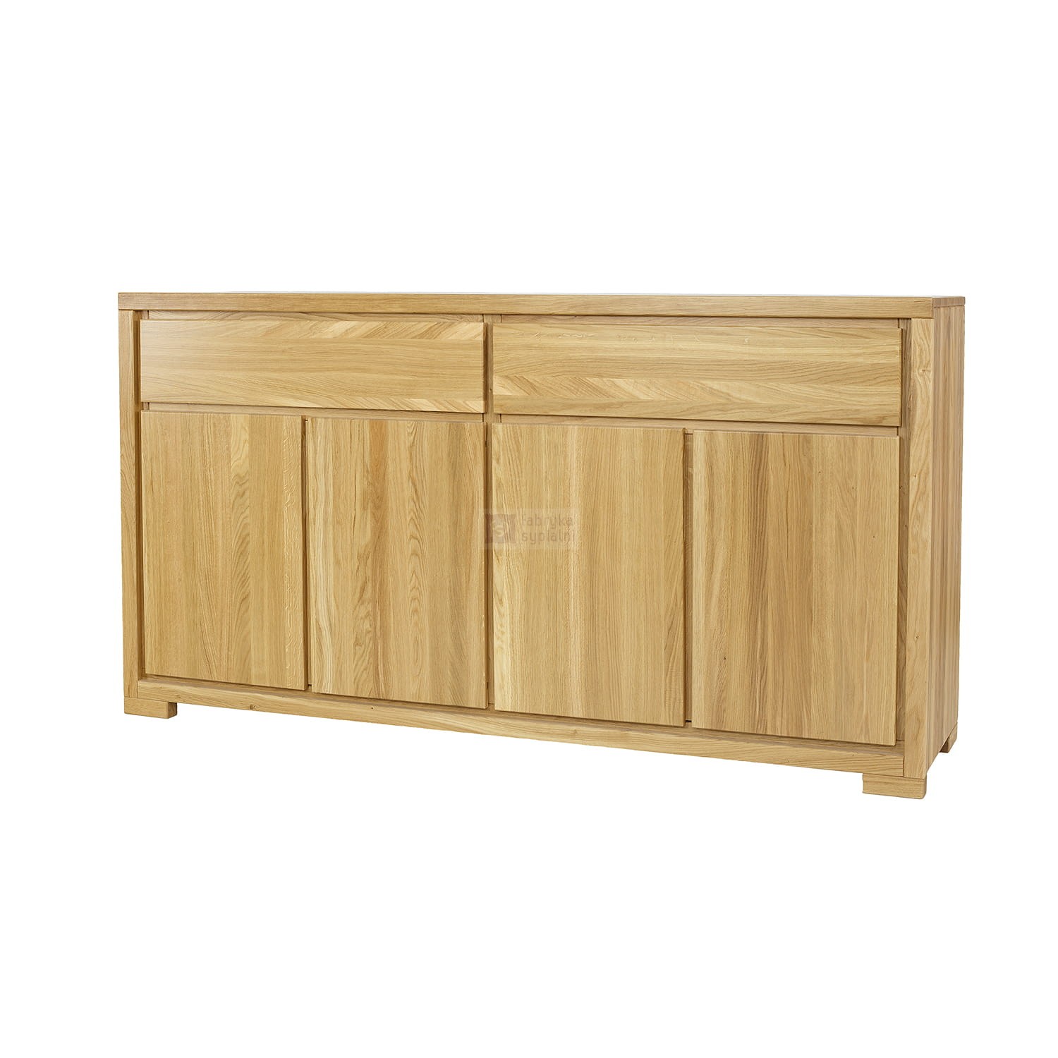 Bardzo duża komoda KD357 wykonana z drewna dębowego, to idealne rozwiązanie dla osób, które poszukują pojemnego mebla, zaprojektowanego w klasycznym, prostym stylu. Komoda posiada dwie szuflady oraz cztery szafki, w których z łatwością przechowasz potrzebne rzeczy. Bezuchwytowe fronty komody to jeden z najmodniejszych trendów w meblach. Naturalna kolorystyka drewna dębowego oraz modny design komody idealnie wpasuje się w klasyczną aranżację wnętrz w Twoim domu.