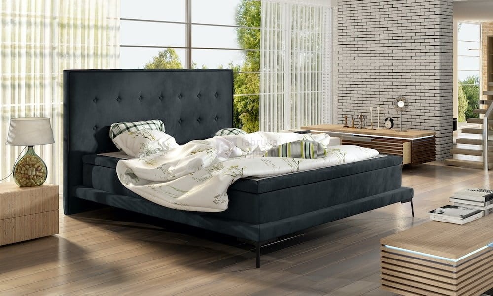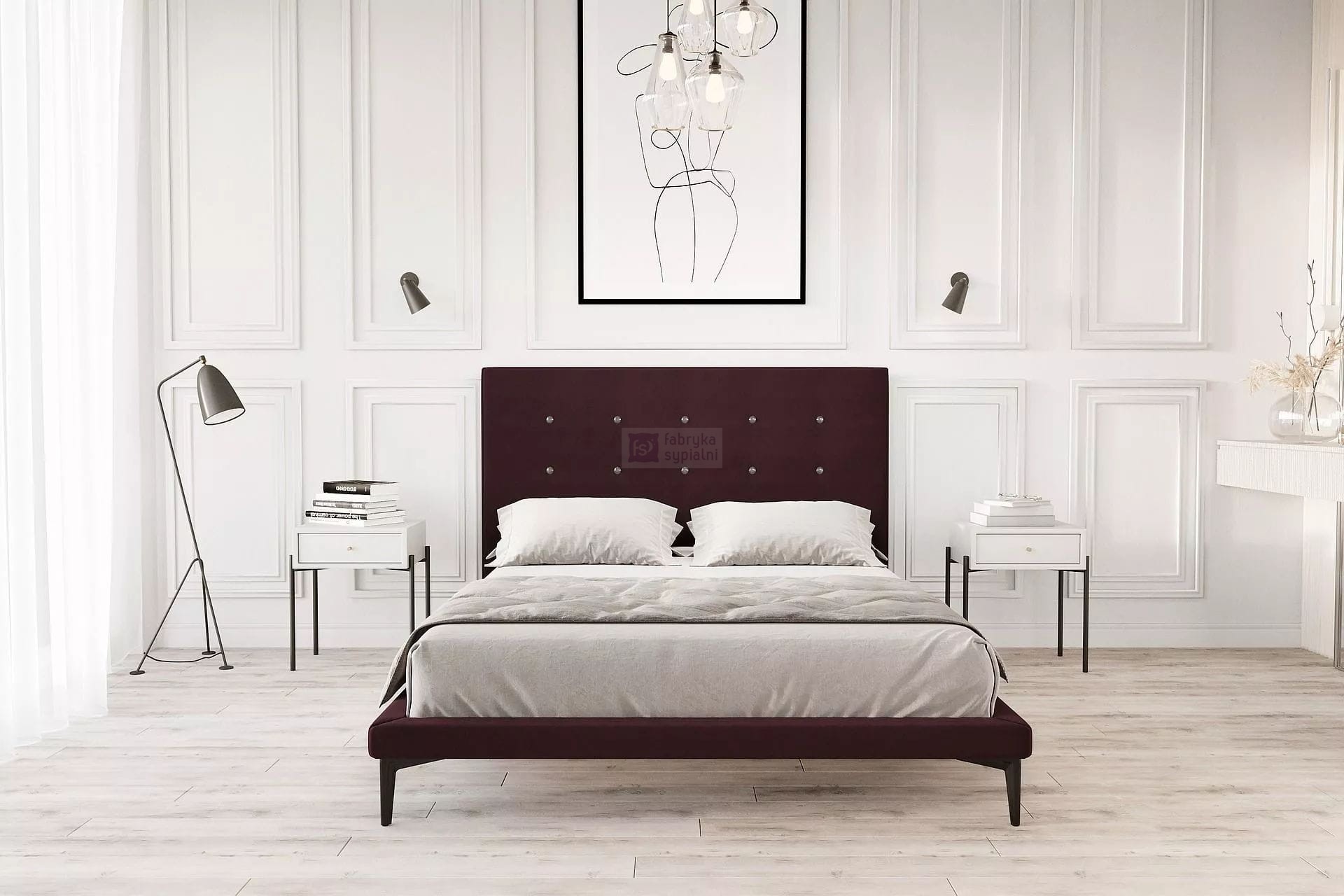 Eleganckie, tapicerowane łóżko w stylu kontynentalnym o prostej, klasycznej konstrukcji z wytwornie wykończonym zagłówkiem i wbudowanym stelażem z elastycznych listew giętych. Idealne do przestronnych, stylizowanych sypialni. Łóżko z płyty w obiciu z tkaniny meblowej, do wyboru z szerokiej gamy kolorystycznej. Możliwość wyboru zagłówka z kryształami Swarovski™ lub guzikami. Poza standardowymi wymiarami, łóżko jest dostępne również w nietypowej szerokości i długości. Za dodatkową opłatą zagłówek można otapicerować w tylnej części. Dla uzyskania pełnego zadowolenia klienta zalecamy odpowiedni materac z naszej oferty.