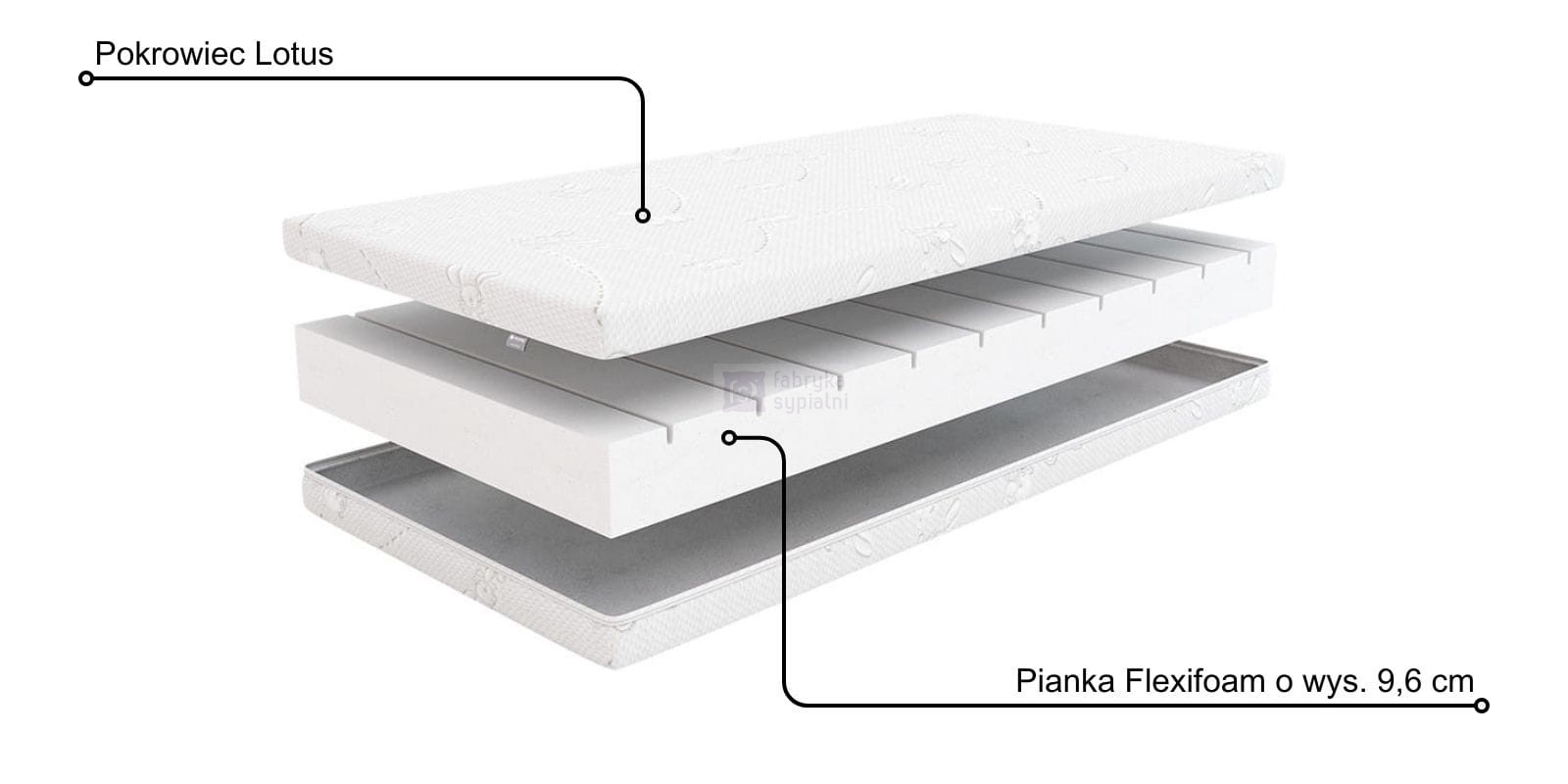 - materac na bazie pianki Flexifoam o wys. 9,6 cm