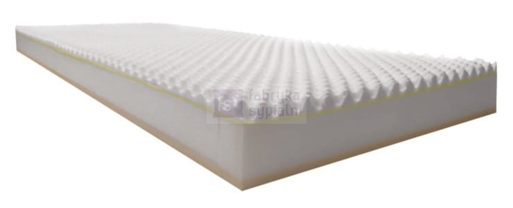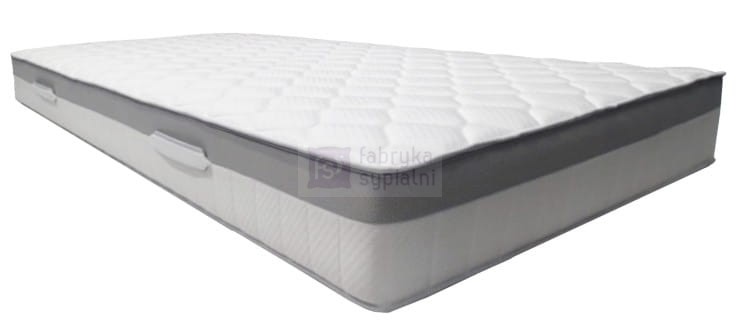 Sprężynowy typu POCKET (264/m2). Blat górny: profilowany latex (20% zawartości naturalnego, wysokość około 3,5 cm). Blat dolny: pianka HR o gęstości 30kg, wysokość około 4cm