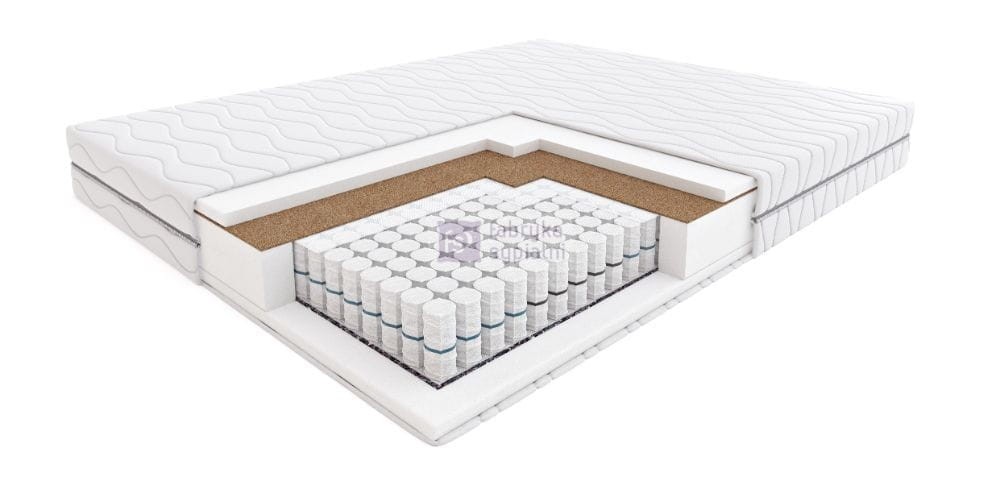 Twardy materac ze sprężynami kieszeniowymi oraz warstwą maty kokosowej zapewniający elastyczność i sprężystość.