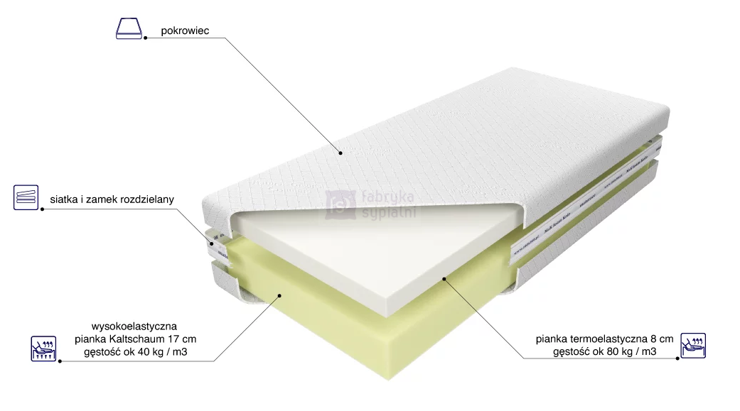 Termoelastyczny średnio twardy materac dopasowujący się do temperatury i nacisku ciała.