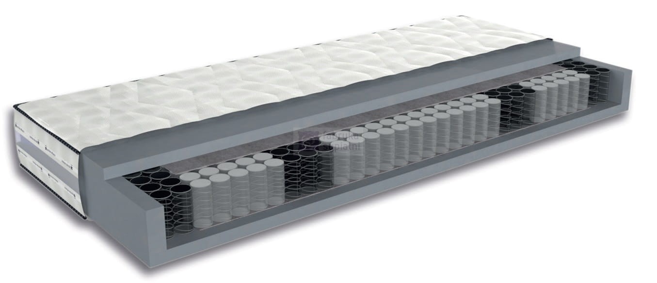 Centralna część materaca, poprzez zastosowanie kieszonkowych sprężyn 7 strefowych, zapewni Ci odpowiednie podparcie ciała, oraz poprzez dopasowanie do kręgosłupa zniweluje jego bóle. Sprężyny zbudowane zostały z wysokiej jakości drutu, który znacznie wydłuża ich żywotność. W celu uniknięcia odczucia nacisku zwrotnego wkładu sprężynowego obłożono go obustronnie filcem oraz pianką.