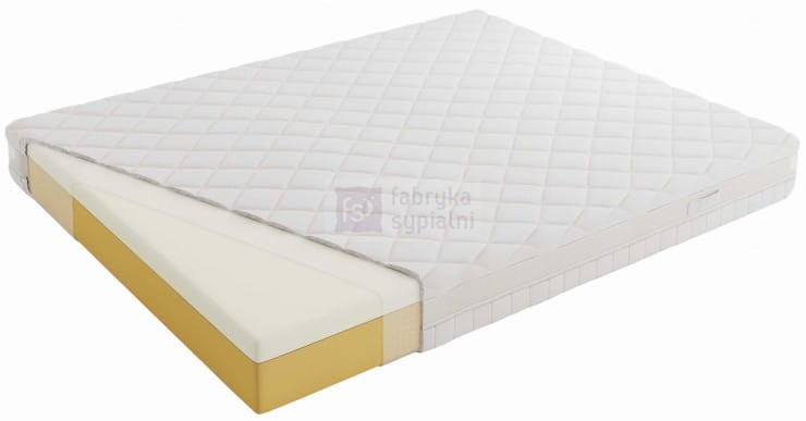 Podstawę materaca Mild Comfort Plus stanowi bezstrefowa pianka wysokoelastyczna, która zapewnia optymalną twardość i sztywność. Stanowi także idealną podstawę dla górnej pianki termoelastycznej, która zapewnia poczcie odprężenia . Dopasowuje się ona do ciała oraz poprawia krążenie, niwelując w ten sposób uczucie drętwienia ciała.