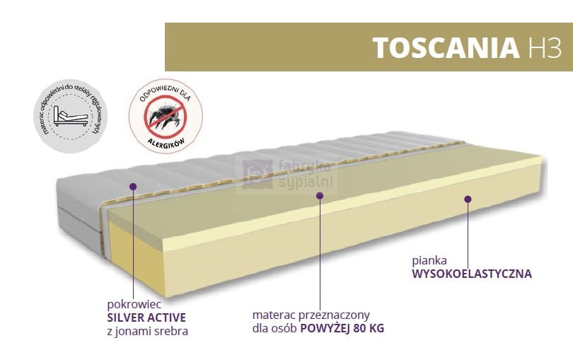 Górną warstwę materaca stanowi 6 cm pianki termoelastycznej zapewniające odprężenie, dopasowanie do ciała oraz zniwelowanie nacisku. Podobnie jak pozostałe materace termoelastyczne poprawi on krążenie i zapobiegnie odrętwieniu ciała. Podstawę materaca stanowi 12 cm pianki wysokoelastycznej, która zapewni odpowiednie podparcie.
