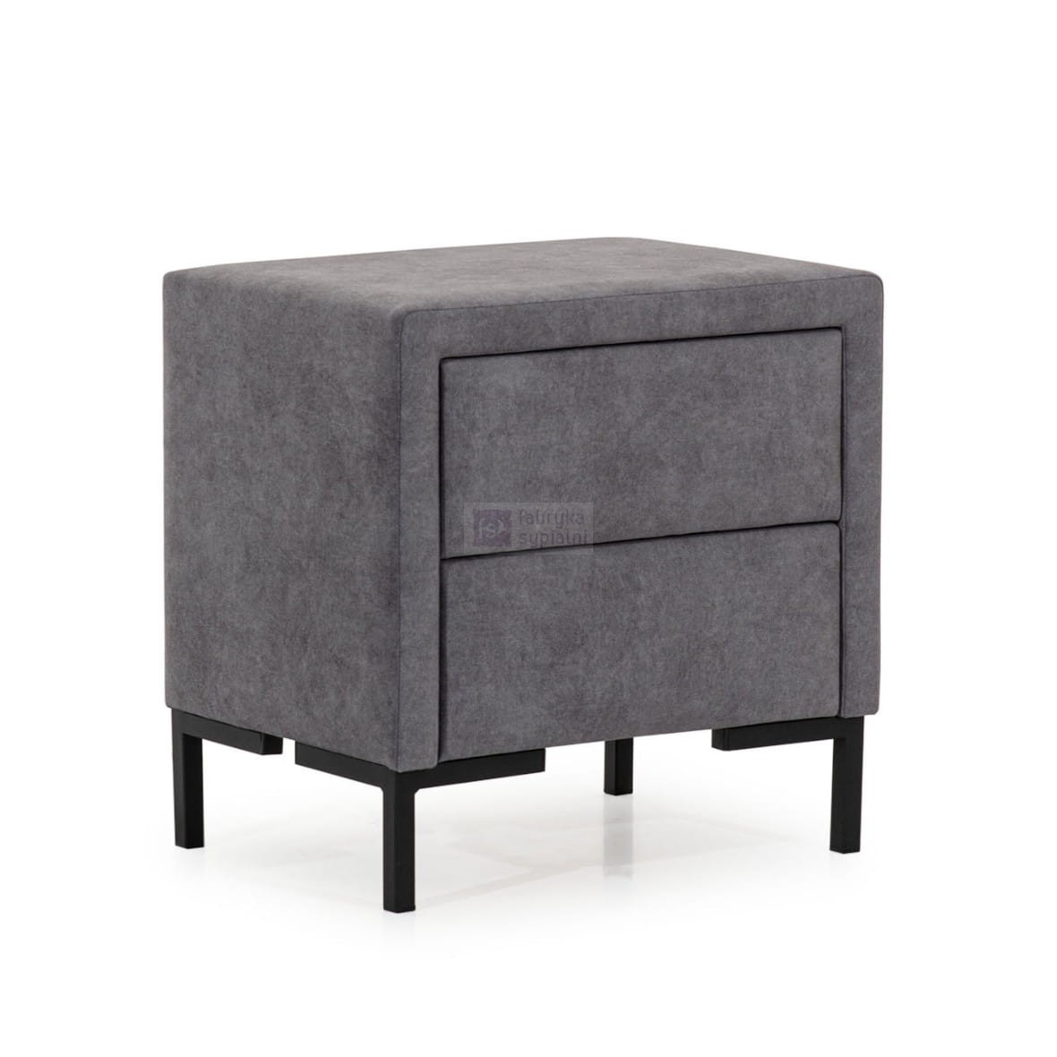 Prosty, tapicerowany stolik (szafka nocna) o minimalistycznym designie. Dwie praktyczne szuflady zamykane systemem push & pull.