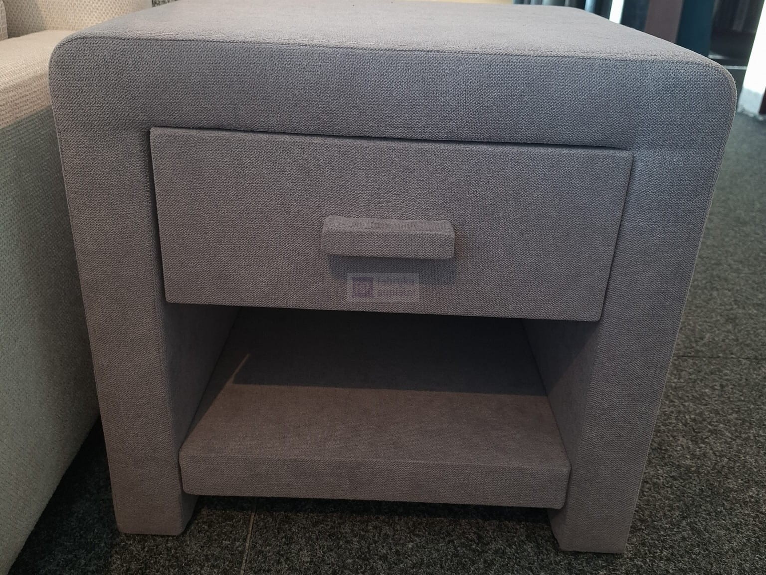 Szafka Nocna 80683 tapicerowana z szufladą oraz półką.