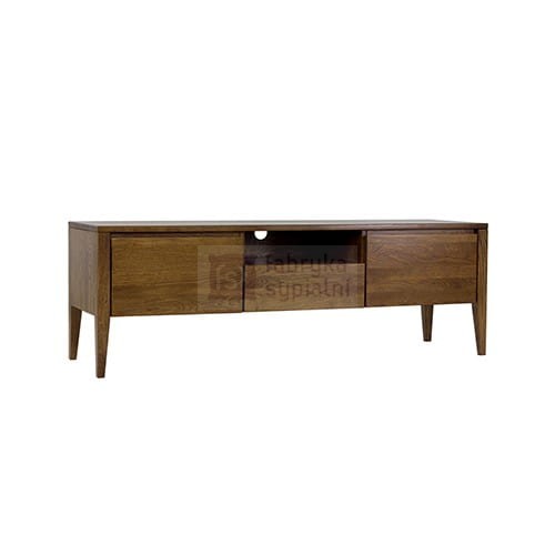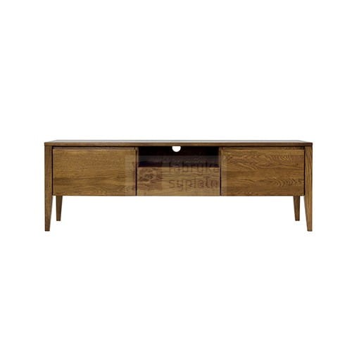 Dębowa szafka RV335 to jeden z tych mebli, który przyciąga wzrok już od progu stanowiąc podstawę multimedialnego salonu. Jest połączeniem nowoczesności z nutą stylu vintage. Zaprojektowana tak, by zdobić. Masywna bryła mebla osadzona została na wysokich nóżkach, co dodało lekkości całej konstrukcji. Jej atutem jest funkcjonalność. Pojemne, bezuchwytowe szafki i szuflada pomieszcza domowe bibeloty. Wyposażona w otwartą półkę na sprzęt rtv, który posiada specjalne otwory na kable oraz zapewnia cyrkulację powietrza.