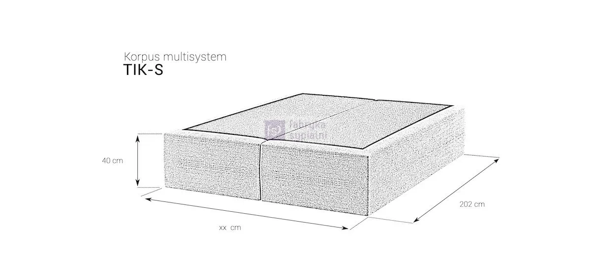 Konstrukcja łóżka opiera się na solidnym korpusie. Korpus TIX ze stelażem drewnianym i sprężyną w materiale tapicerskim na siłownikach gazowych oraz pojemnikiem na pościel stanowi samodzielne łóżko lub jest podstawą do zamontowania zagłówka, z którym stworzy Multisystem według projektu klienta. Występuje w bogatej ofercie tkanin obiciowych. Wymaga skompletowania z wybranym rodzajem materaca M&K foam. Korpus na ślizgaczach. Za dodatkową opłatą istnieje możliwość zamówienia korpusu o nietypowej długości i szerokości. Od szerokości 120 cm korpus składa się z dwóch części.